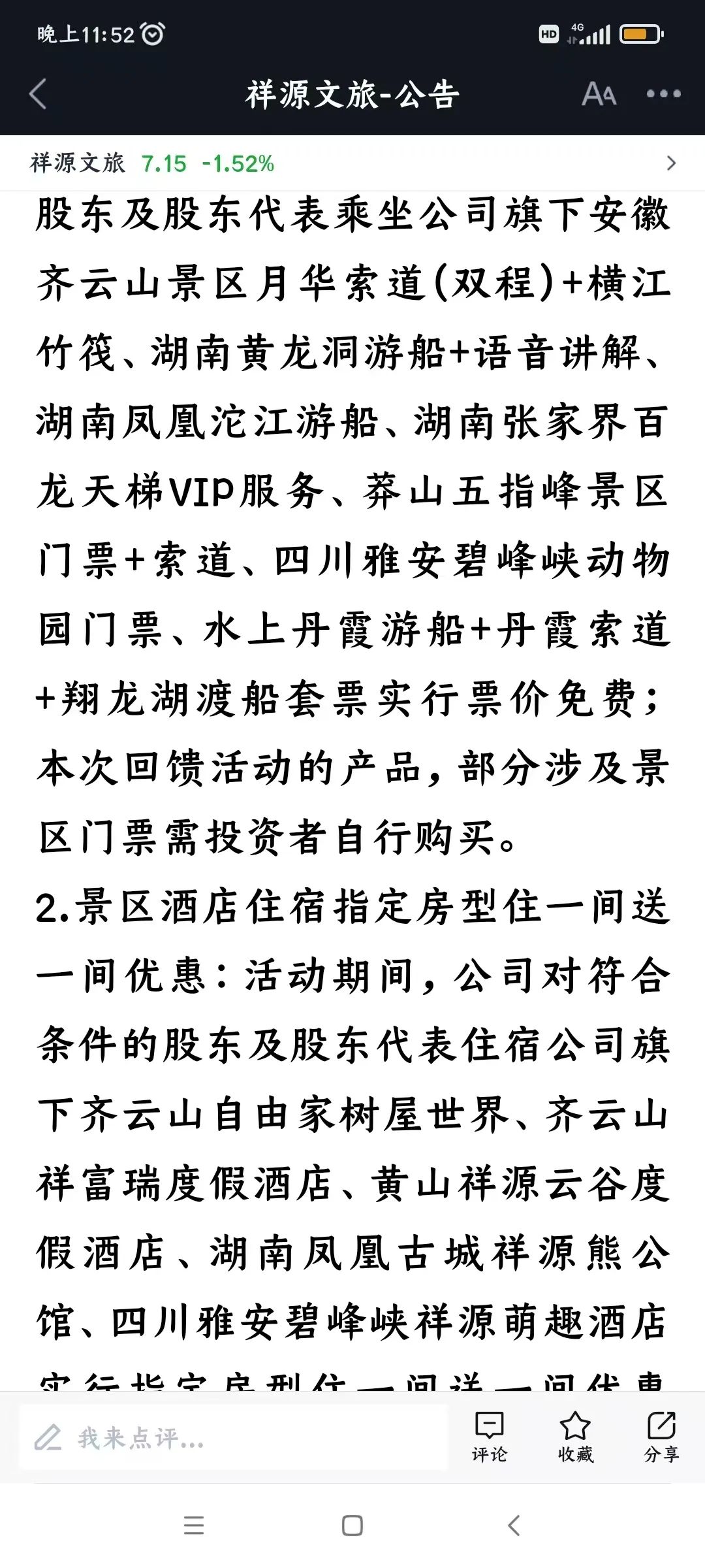上次股东回馈发的是景区门票、船票、索道票、景区住宿买一赠一等等,我还截图保存了,就是希望有朝一日能用得上。