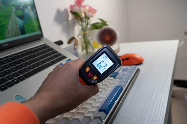航空级 ThermaFlow 热交换设计和 AirXon 涡流风道增压技术的应用,更是让它在取暖体验上脱颖而出。再加上它通过优化热流路径与风道结构,实现极速升温,暖风柔和均匀覆盖全方位,告别了直吹刺热的不适感。同时,涡流风道增压系统通过仿生涡轮推动热流循环,让热风覆盖更广、更柔和,即便是大一点的空间,也能稳定、持久地感受到温暖。覆盖桌面是完全没有问题的,到我桌子的远端都还有60摄氏度的温度,这个平均温度大概是在65摄氏度左右。