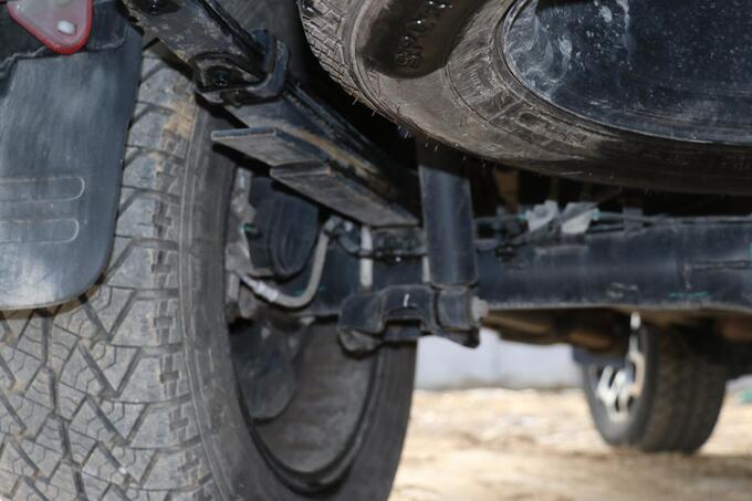 悬架方面,江淮悍途采用行业主流的前双横臂螺旋弹簧+后钢板弹簧悬架。并且其前悬架为不等长双叉臂结构,减震弹簧直径16.7mm,簧片加长170mm、加厚1mm,这样的设计就使得江淮悍途具备更强的横向刚度和抗侧倾能力,有效提升行驶稳定性和操控感受。