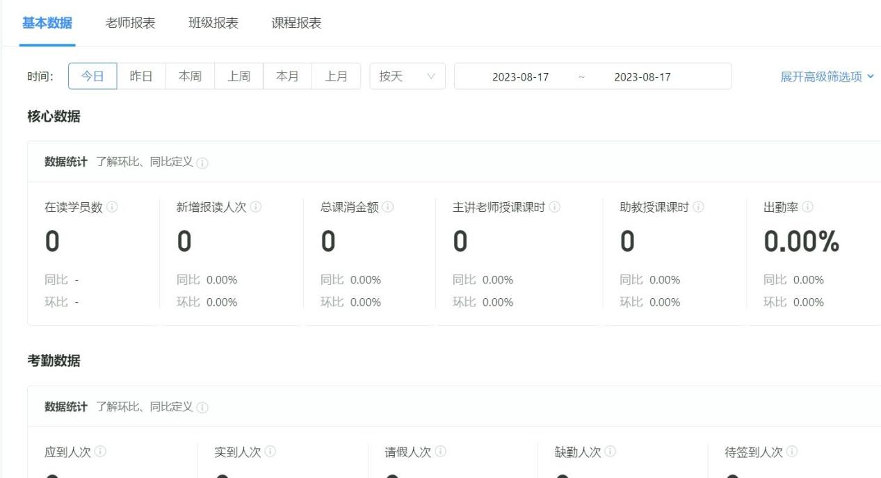 自定义筛选条件:根据管理需求,设置统计时间范围(日/周/月/自定义)、校区、班级、课程类型等筛选条件,后续可直接调用,无需重复设置。