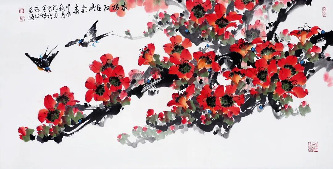 初次认识何门遂老师是在十多年前的“何堂粤色”书画展上,这是一众何姓同族的书画展览,参展者中不乏书画界的名家及国内非遗文化传人,其中何门遂老师的作品尤为引起我的注意,书法中看得出岭南名家麦华三前辈的遗韵,而花鸟作品明显带有岭南名家陈子毅、程家焕的影子。前辈陈子毅、程家焕是岭南画派画家中的重要代表,作品无论题材还是笔墨都具有鲜明的岭南特色,作品注重笔墨与色彩的和谐统一,色彩艳丽,用墨厚重,结合上刚劲而流畅的线条,色墨或浓或淡,或干或湿,由此产生出层次分明、韵味十足的个性,作品生动活泼,在岭南画派技法之中独树一格,深受大众的欢迎。