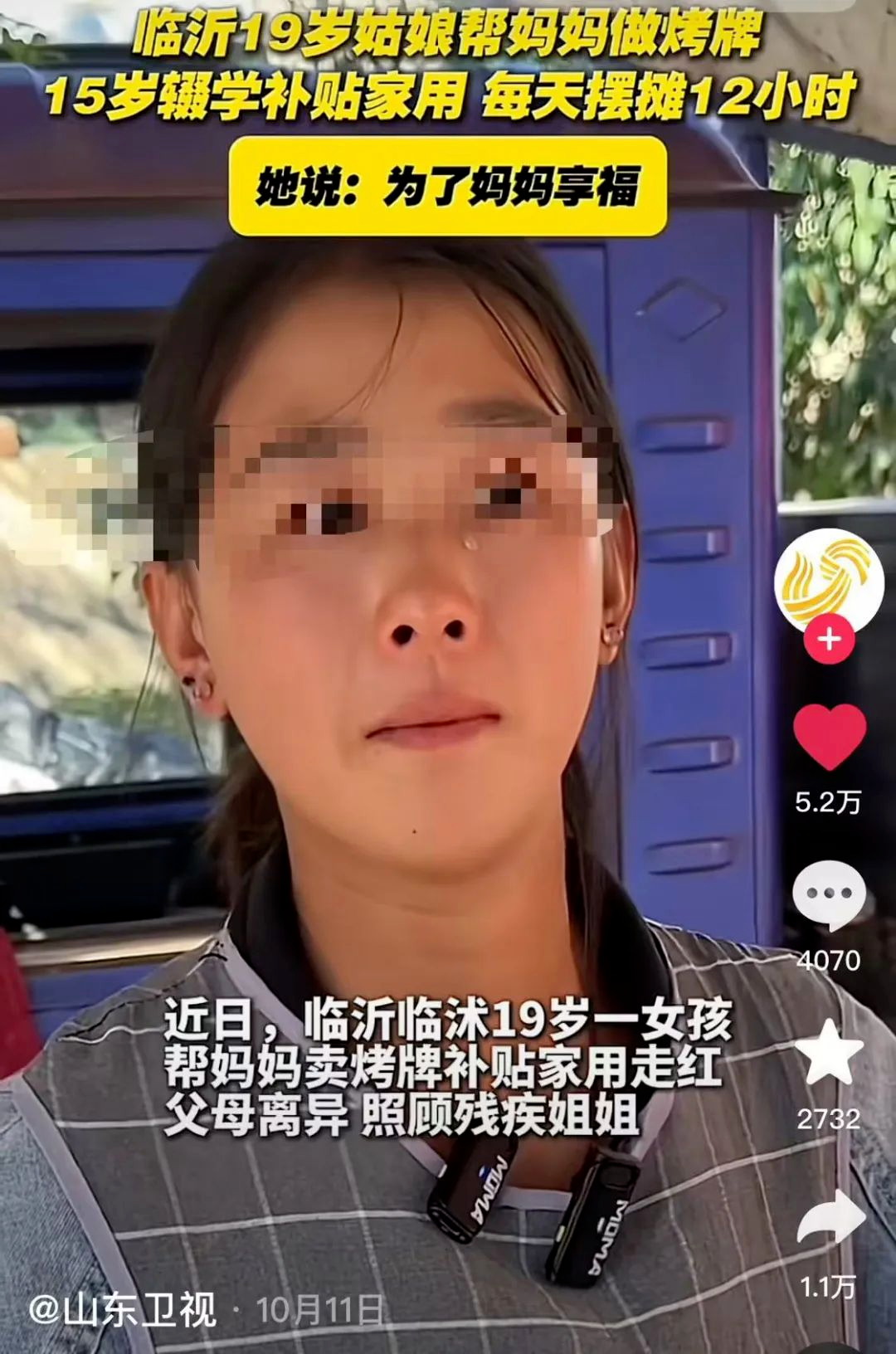 为了给妈妈分担生活的压力,姑娘读书读到15岁的时候就辍学了,每天早上3点起床,帮妈妈做着各种出摊前的准备工作,一天要忙12个多小时才能休息。