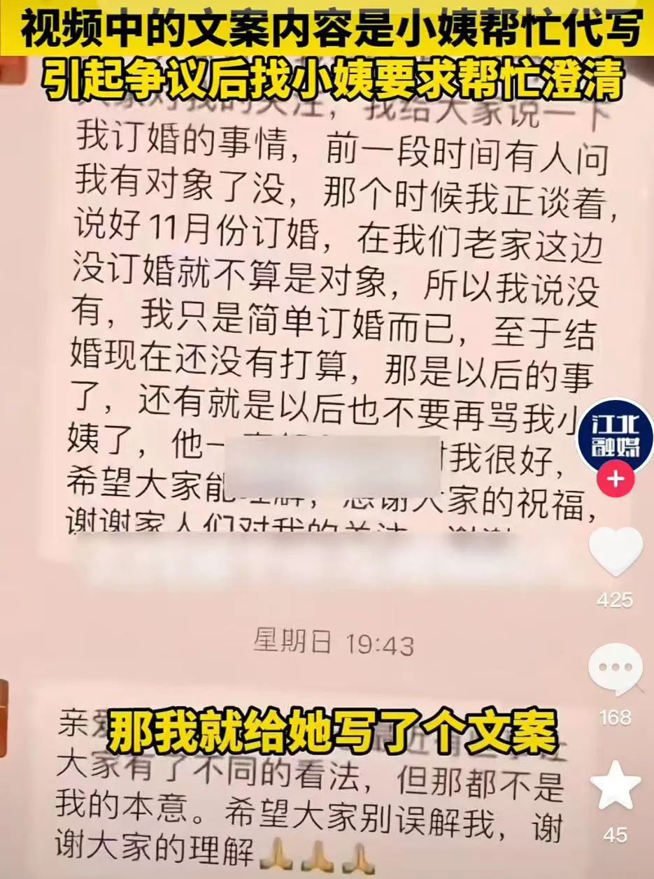 面对突如其来的质疑,她在视频里这样解释说,别人问自己有没有对象时,自己其实正谈着。
