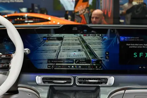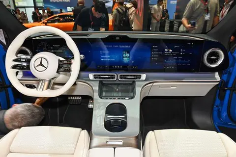 内饰延续奔驰的豪华基因,39.1英寸MBUX超联屏横贯仪表台,OLED材质搭配超1000颗独立LED,白天不反光、夜晚不刺眼。更贴心的是本土化升级:搭载豆包AI大模型和思必驰语音技术,"你好,奔驰"能听懂方言,还有高德定制导航和腾讯视频加持。再配上64色氛围灯和Burmester音响,豪华感直接拉满。