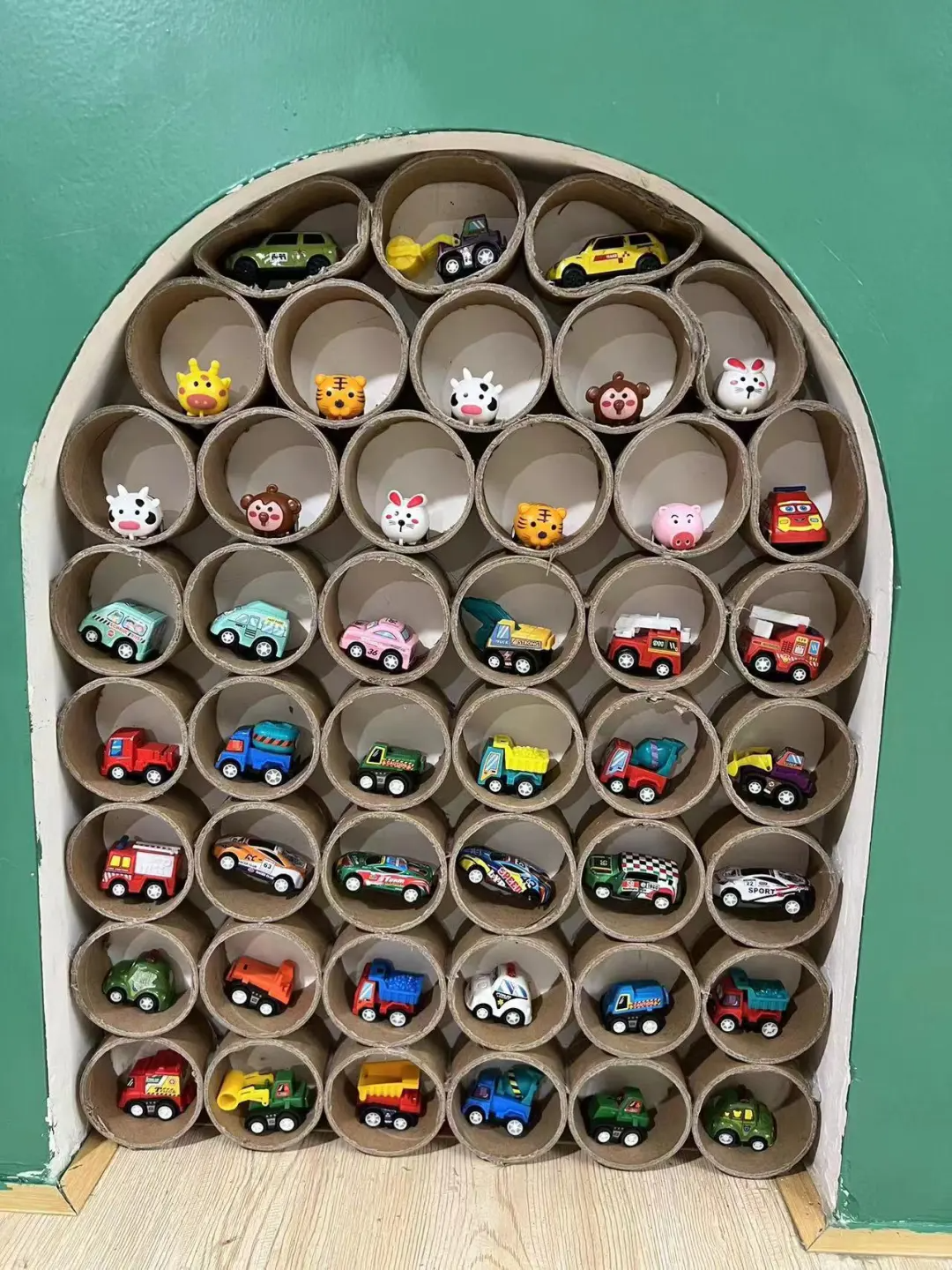 不管是放在哪里都觉得特别的碍事,这个时候大家就可以利用闲置的卷纸筒来diy玩具小汽车的收纳架。