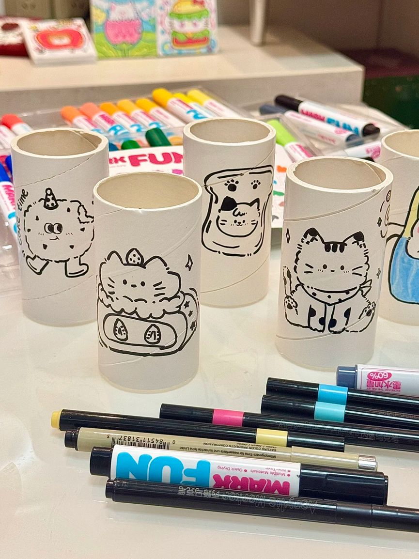 如果大家家里面有小朋友的话,那么也可以利用闲置的卷纸筒和小朋友一起来进行diy创作。