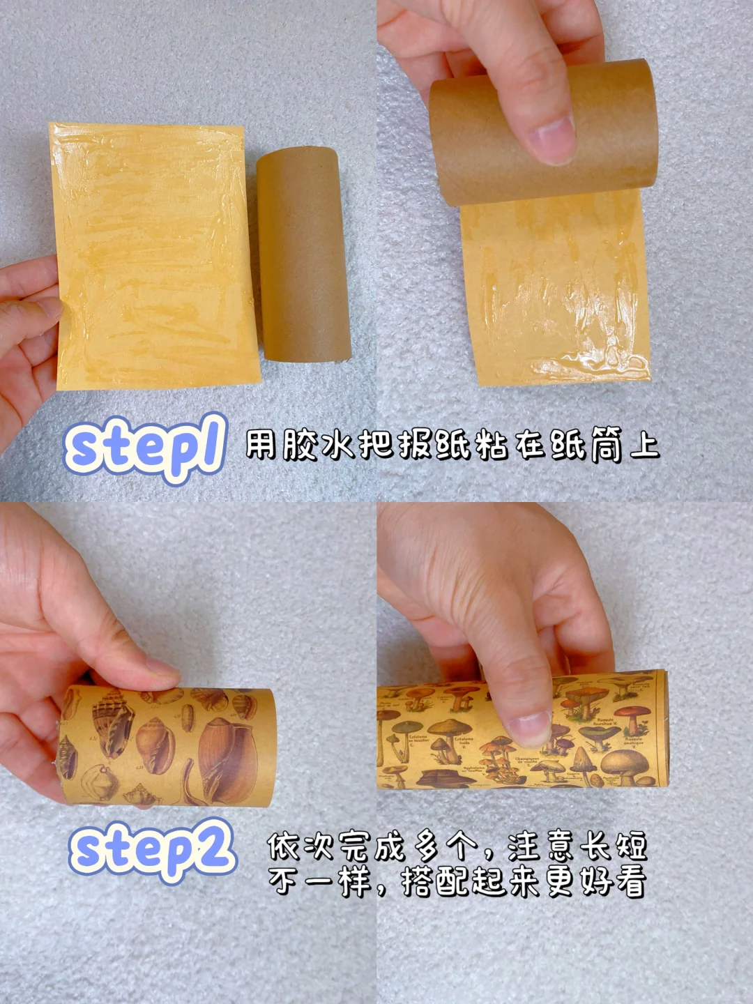 大家只需要提前准备好卷纸筒去海报或者是旧的报纸,再准备一些胶水使用胶水将报纸粘贴在纸筒上。