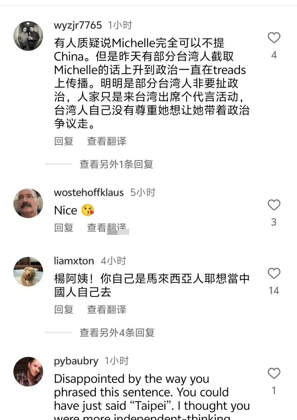 杨紫琼的言论,无疑触碰到了台湾网友的焦虑点。