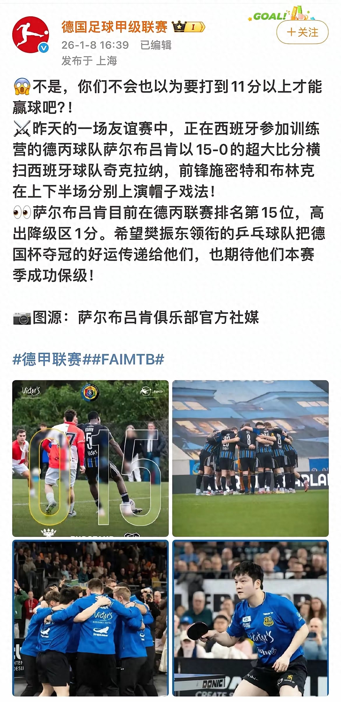 这种热度背后,是实打实的"流量密码":他加盟后,俱乐部社媒粉丝从1万涨到48.5万,主场场均观众从500人跃升至5200人,甚至有荷兰、法国的球迷专程跨国观赛。德国媒体调侃:"以前我们以为足球是唯一的信仰,直到樊振东来了。"