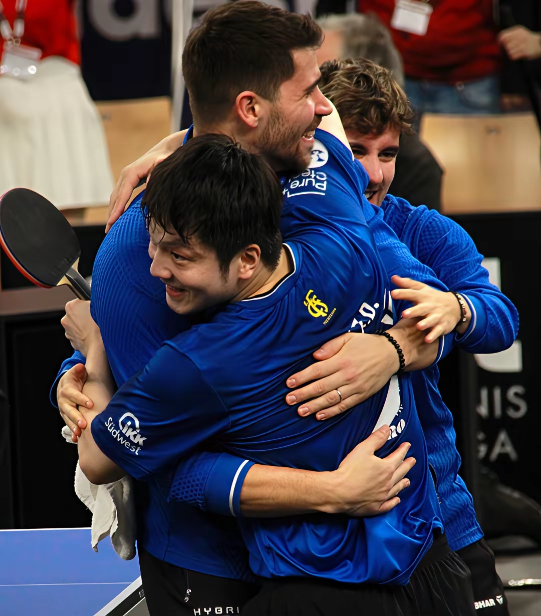德国乒乓球杂志《tennis》将他登上1月刊封面,评价他"不仅掌控比赛,更掌控了人心"。的确,他会把领奖台C位让给队友,会为了小莫放弃幸运色球衣穿红色比赛,会在夺冠后先给国内的恩师发消息报喜。这些细节让德国人明白:这个赛场上的"凯撒",生活中是个谦逊温暖的大男孩。