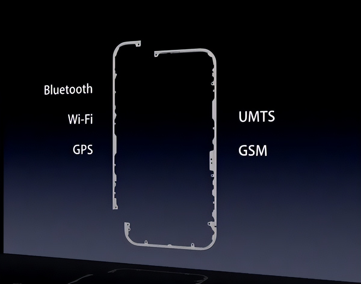 iPhone 4 的不锈钢边框被分隔为两段,分别承担不同信号的天线功能。然而,当用户的手同时接触到两段天线的分隔缝隙时(被戏称为“死亡之握”),就会导致信号短路并引发强度衰减。软件算法的失误则进一步放大了这一问题。