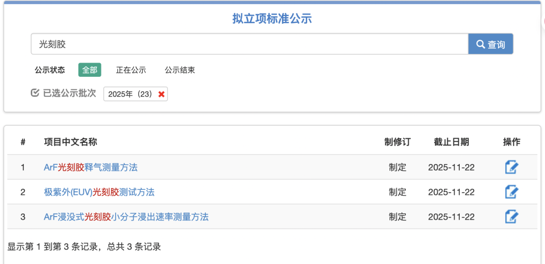 10月23日,国家标准化管理委员会公示了三项光刻胶相关标准,其中最受瞩目的是《极紫外(EUV)光刻胶测试方法》。EUV光刻胶作为突破3nm及更先进制程的核心材料,其标准制定对我国集成电路产业具有重大战略意义。
