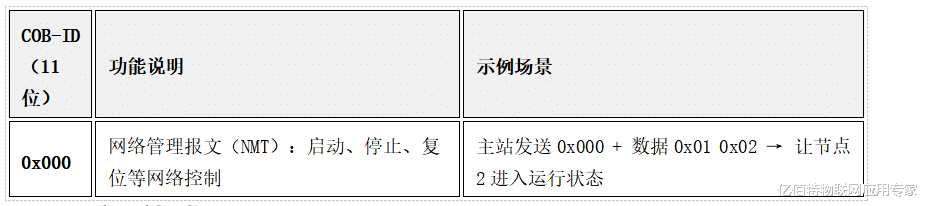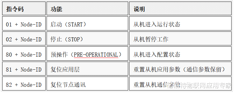 六、不同COB-ID的功能速查6.1 网络管理类(NMT)