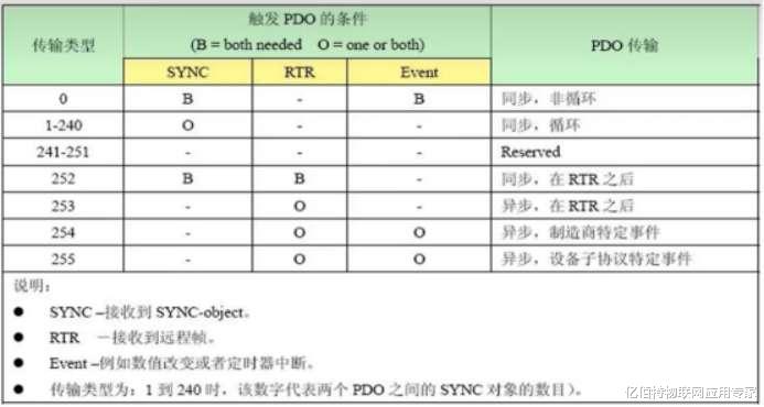 PDO的传输时机由传输类型决定,核心触发条件包括同步(SYNC)、远程帧(RTR)、事件(如数据变化):