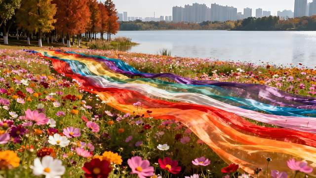 象湖湿地公园的秋,是花海与湖光的梦幻邂逅。经过 “绿改彩” 升级的园区,此时正被格桑花、硫华菊铺满,粉白、橘黄、绛紫的花朵连成一片,如彩色云霞铺展在湖畔。环湖栈道蜿蜒穿行于花海间,游人漫步其上,衣袂轻拂花穗,随手一拍皆是绝美画卷。夕阳西下时,湖面倒映着花海与霞光,白鹭掠水而过,泛起细碎涟漪,引得摄影爱好者纷纷驻足,定格这湖光花海共舞的瞬间。
