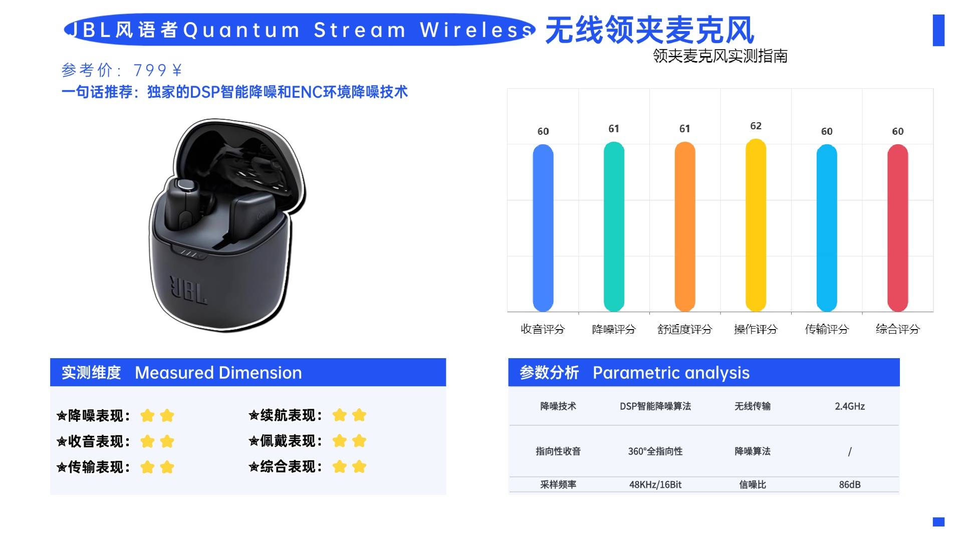 领夹麦克风推荐2025上榜型号七、JBL风语者Quantum Stream Wireless