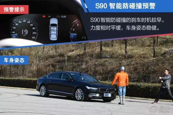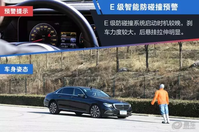 在实际的测试体验中,两台车都表现出了非常优秀的成绩,特别是在智能防碰撞这项功能上,在0-60km/h范围内都能非常稳健的刹停。沃尔沃更像是一位经验老道的专业司机,刹车点更早,整个刹车过程控制的相对平缓。这个现象也从一个侧面展现出沃尔沃对于安全细节的注意,过猛的急刹往往会对车内乘员造成意外的伤害,而且还会有被追尾的危险。奔驰则像是一位激进的年轻人,自动刹车功能在很晚才启动,车辆通常以相当大的制动力完成刹停。