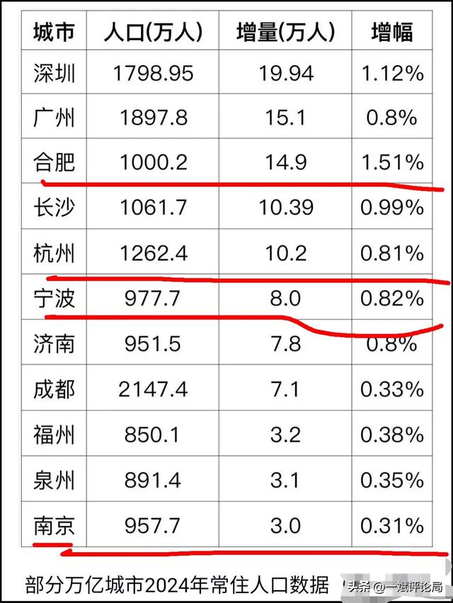 总之,三地经济迅速发展,提供了大量就业机会,人口得到了迅速回流。而相应地,杭州、宁波、温州等沿海发达地区,近年来常住人口虽然仍处于增长之势,但较前些年动辄每年增加十几、几十万的人口红利相比,已然成为“明日黄花”了。尤其是 2024年,一直为安徽人“心向往之”、尊称为“徽京”的南京,去年仅增加常住人口3万人,只及合肥的五分之一。其实,这与笔者平时接触到的朋友、同学、同事对南京城市的关注度不断下降也是高度契合的。合肥人似乎比以前更为自信了!