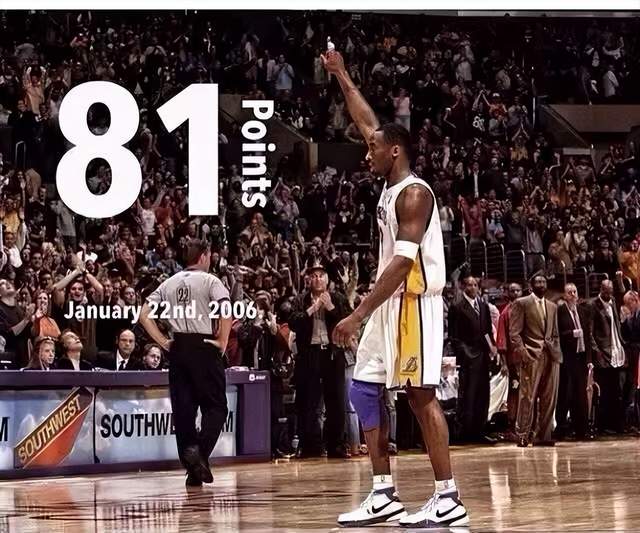 科比在比赛中狂砍81分,创造了NBA历史单场第二高分纪录,仅次于张伯伦的100分。