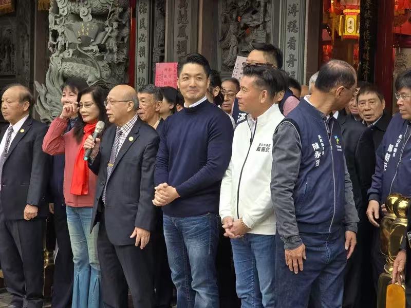 蒋万安今早先到松山霞海城隍庙,再到台北府城隍庙,随后赴松山慈祐宫及松山慈惠堂。由于选举年,松山信义选区议员、参选人纷纷陪同,包含现任议长戴锡钦、议员秦慧珠,以及参选人杨智伃、满志刚、许原荣、李焕中。