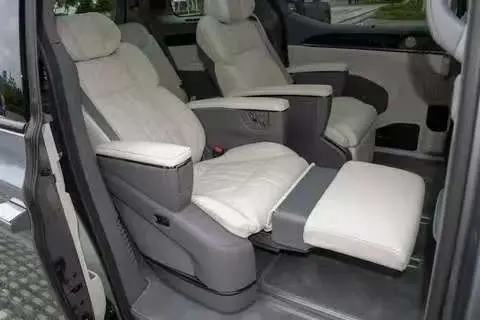 六座版被很多人叫做“陆地头等舱”,我坐过一次第二排,确实能理解这个说法。它的第二排座椅特别宽,量了一下大概有70厘米,坐两个人一点都不挤。座椅里的海绵很厚,有12厘米,而且弹性很好,坐上去像陷在软沙发里,不会觉得硬。最舒服的是腿托,能拉出来50厘米,把腿放上去之后,整个人都能舒展开,长途坐车也不会觉得腿麻。