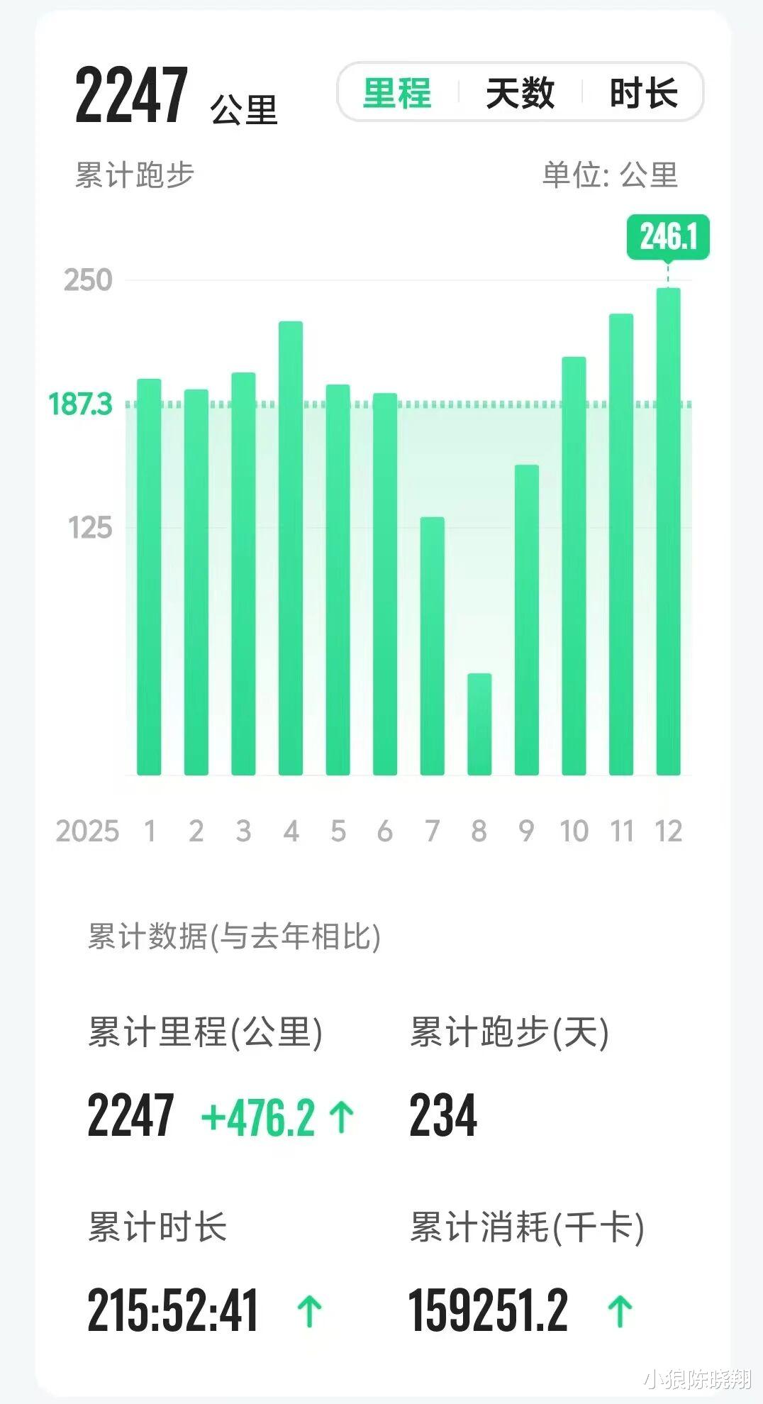 本科学的汉语言文学专业,研究生念的马克思主义哲学,业余爱看历史,文史哲占全了,怎能不说我是一个文科生,哈哈。但同时,我也喜欢用数字记录,量化自己的生活。15年前就考了会计证,后来还考过了基金、期货、证券分析师等与数字相关的证书等。股票投资,更是从18岁之后没停过。所以,2025年的总结,就说两个数:2247公里和863.5万字。一、2025年跑步2247公里