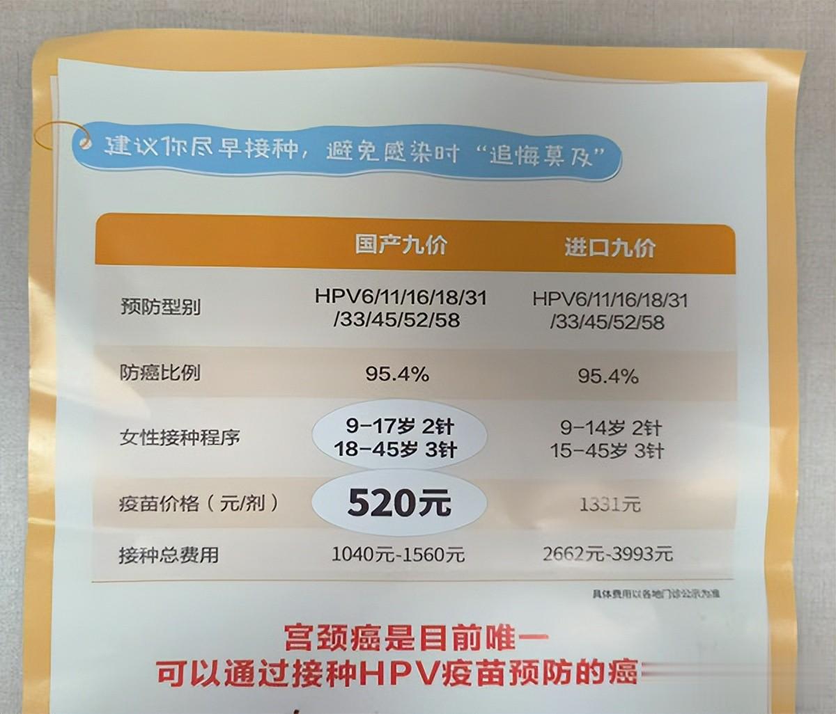 15~17岁女生只需接种两针,520元/剂次