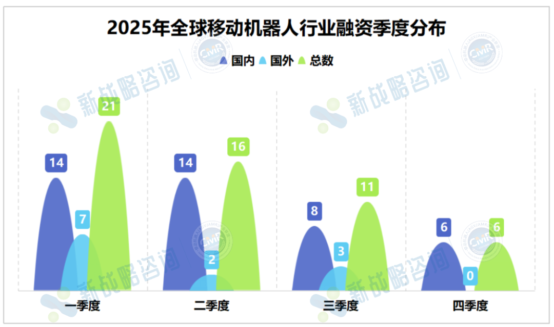 图表:2025年全球移动机器人行业融资数量季度分布