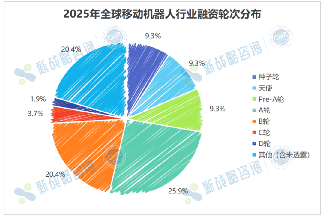 图表:2025年全球移动机器人行业融资轮次分布