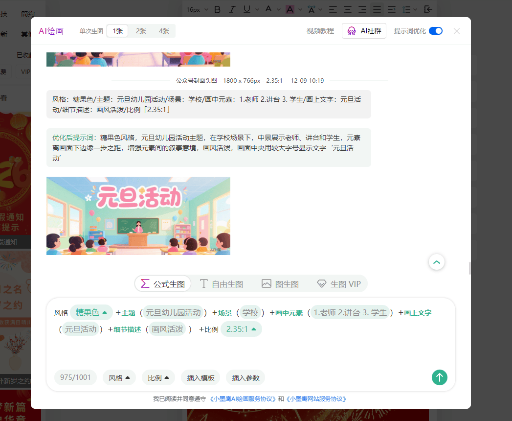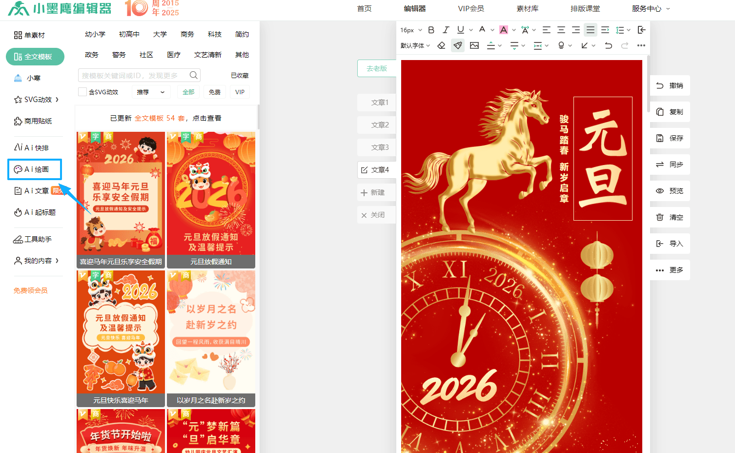 之前我一直以为必须用PS这种专业软件,后来发现根本不需要。现在很多在线编辑器都有AI绘图功能,我用的是小墨鹰编辑器,因为它对公众号运营特别友好。