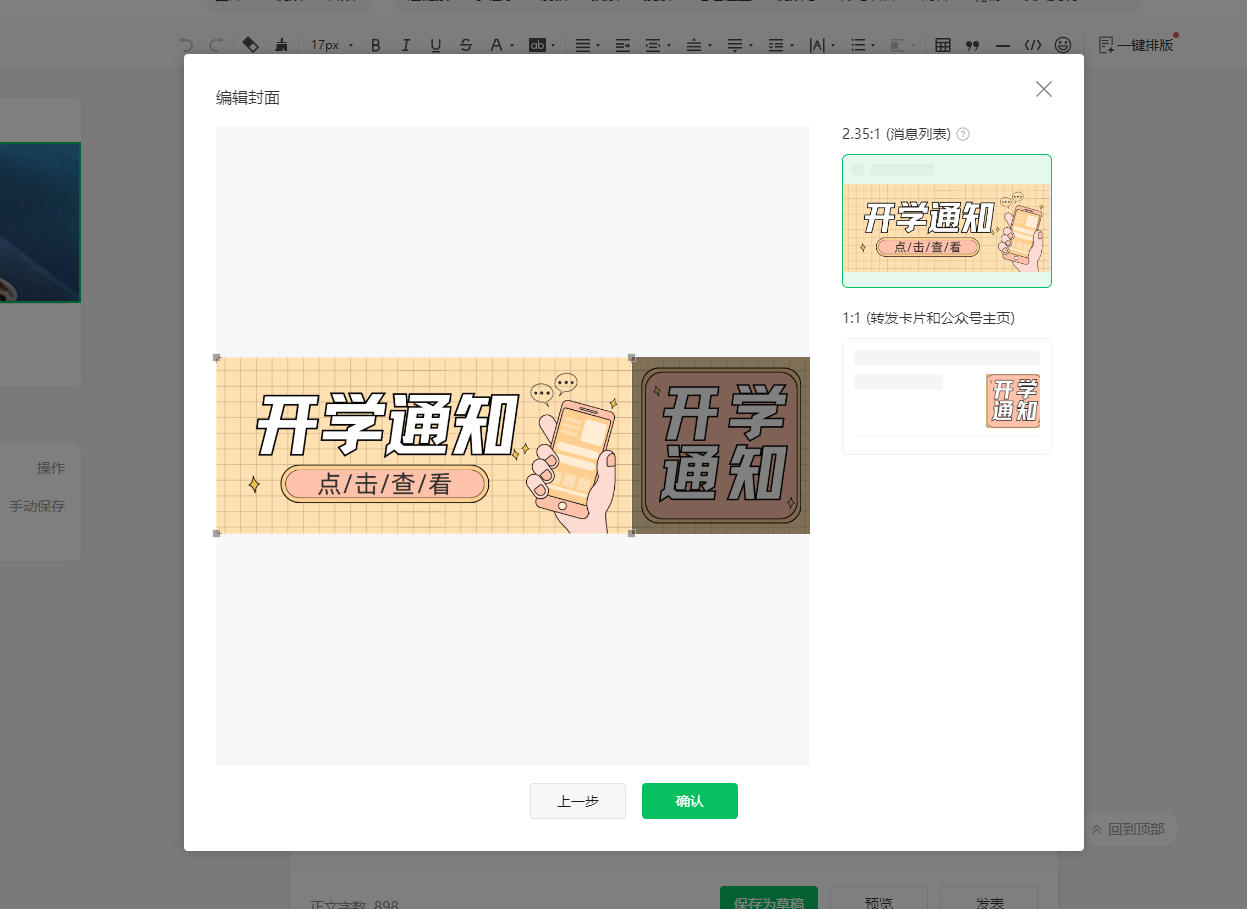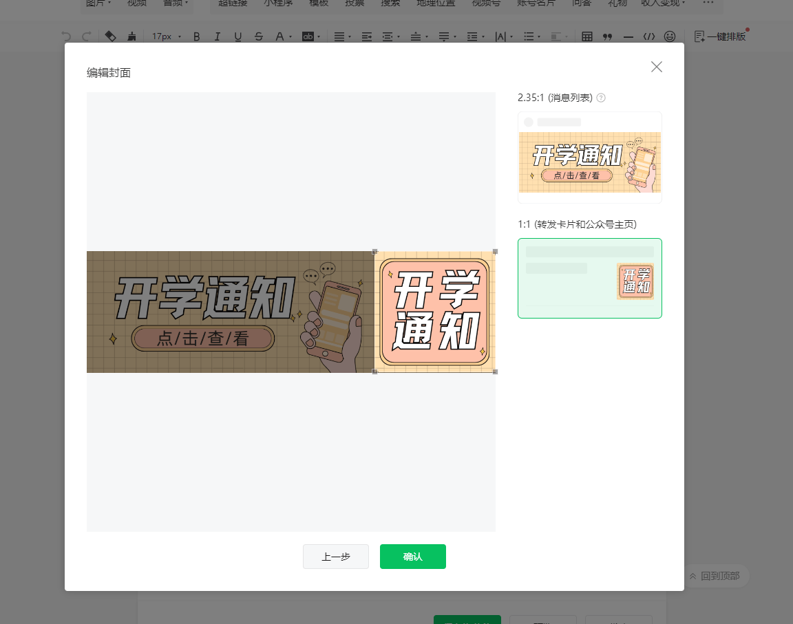 进入公众号后台,创建新文章。上传拼接好的图片作为封面图后,你会看到一个调整框。拖动图片,让头图部分完全覆盖显示区域,小图部分则对齐另一个框。这个过程有点像玩拼图,对准了就行了。