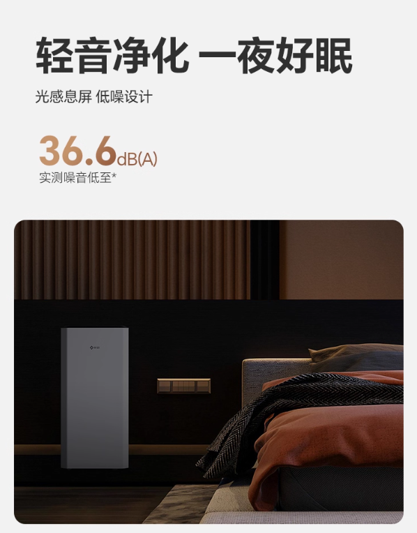 我将净化器放置在距离宝宝婴儿床 1.5 米处进行实测:夜间开启 “睡眠模式” 后,即使凑近机身也只能听到极细微的气流声,用分贝仪检测显示数值稳定在 36-37dB 之间。连续一周的使用中,宝宝入睡后从未因净化器噪音惊醒,甚至能在净化器运行时顺利进入深度睡眠。此外,它还配备了自动感光功能,夜间机身指示灯会自动熄灭,避免光线干扰宝宝睡眠,细节设计十分贴心。