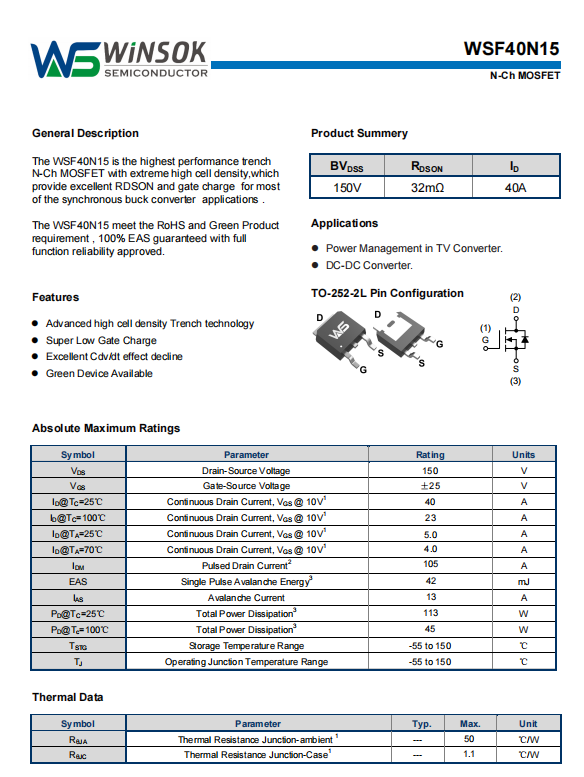 二、WSF40N15关键特性