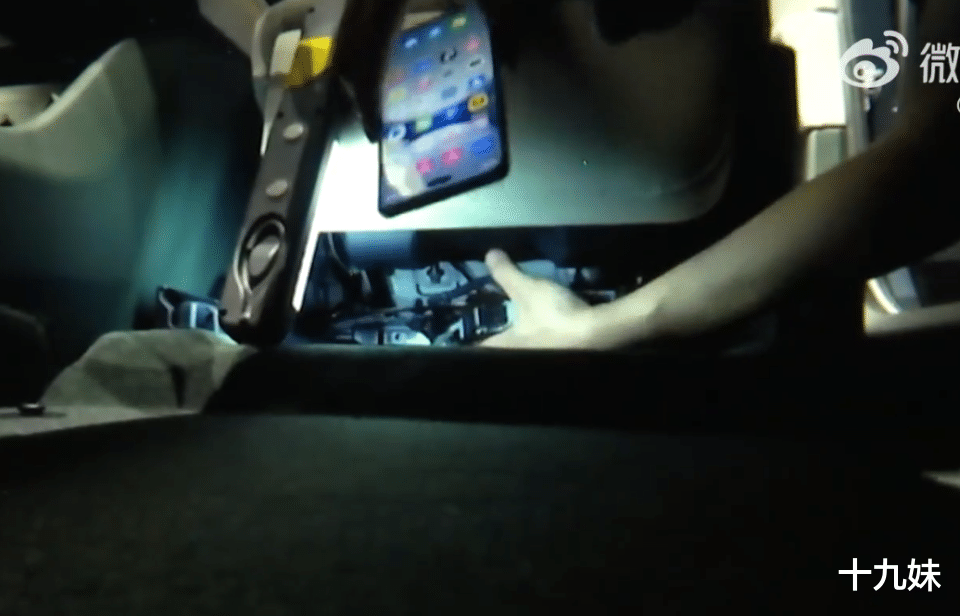隔天,他买了一套脚垫,准备自己动手装上去。安装过程中,他发现主驾座椅正下方有个鼓包,他尝试用手按了按,隆起部位是硬质的,按不下去。