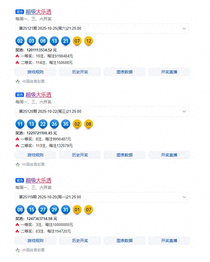 回顾:近三期开出一等奖21注,3注1000万,一人独中1600万,令人羡慕!