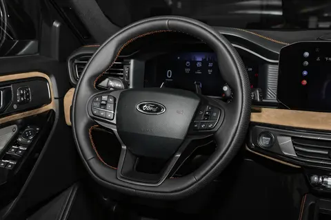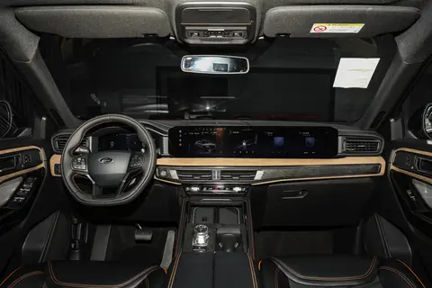 长安福特探险者昆仑穿越版内饰部分暂未曝光,预计将沿用现款昆仑巅峰版车型设计风格,采用环抱式座舱设计,配备12.3英寸液晶仪表、27英寸贯穿式中控屏幕、平底造型多功能方向盘、旋钮式换挡杆等。