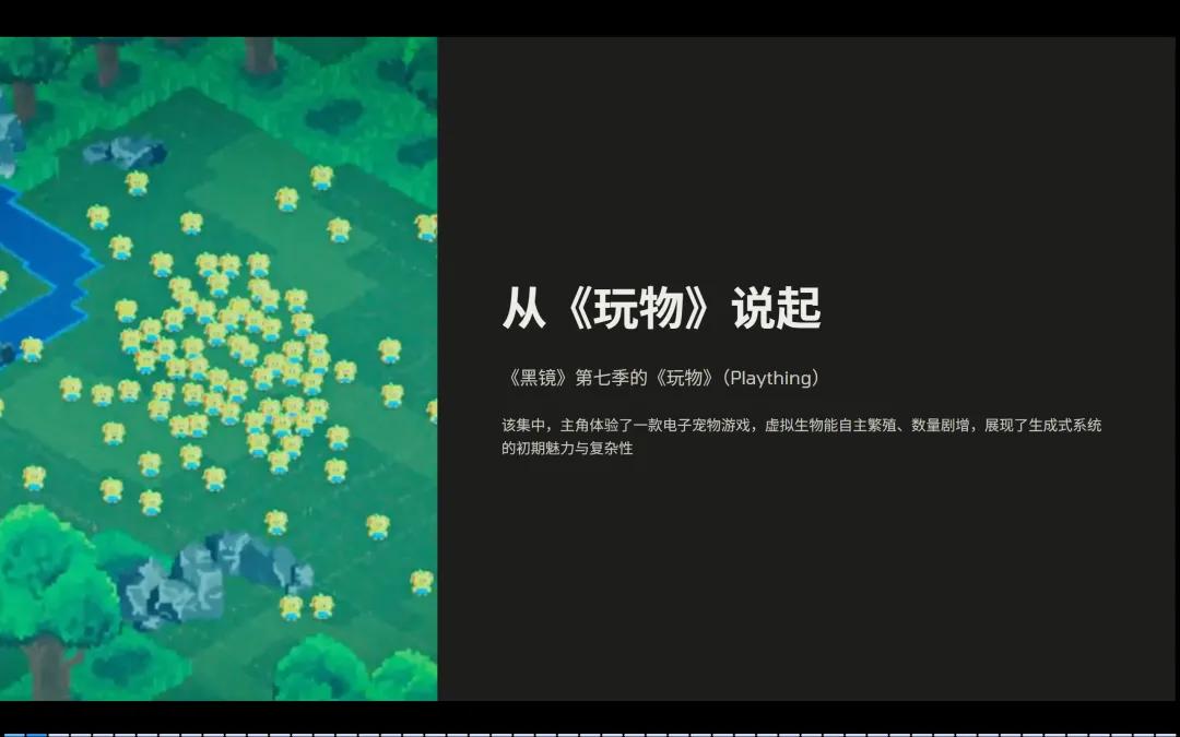 分享一开场,张昊阳就抛出了一个问题:你有没有想过,虚拟世界里,游戏里的生物能否自主进化?这并非科幻设想,而是他团队正在尝试实现的可能——让游戏不只是被设计好的内容,而是像一个文明一样自我发展。