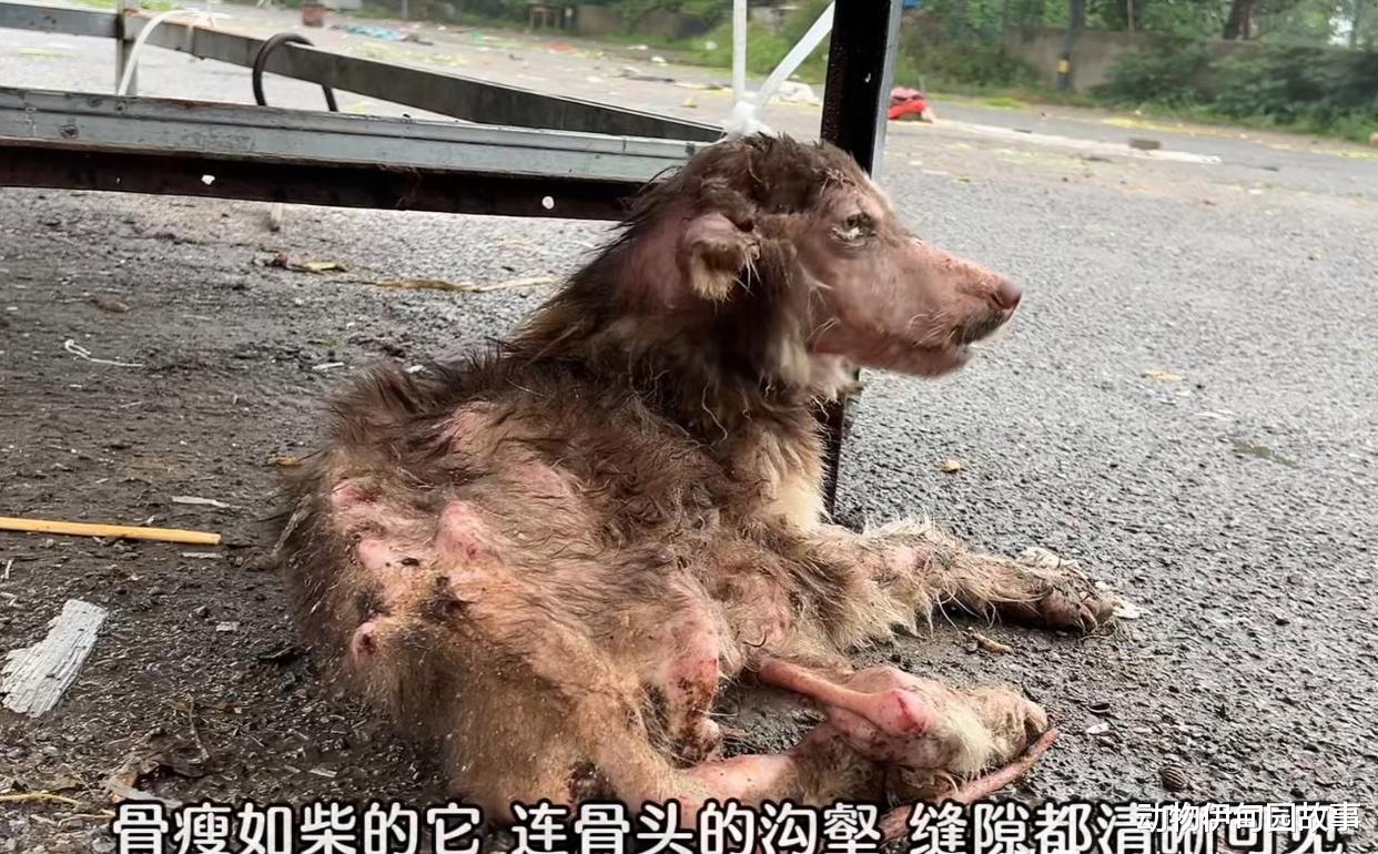 我是一只骨瘦如柴的流浪狗,身上还有严重的皮肤问题!