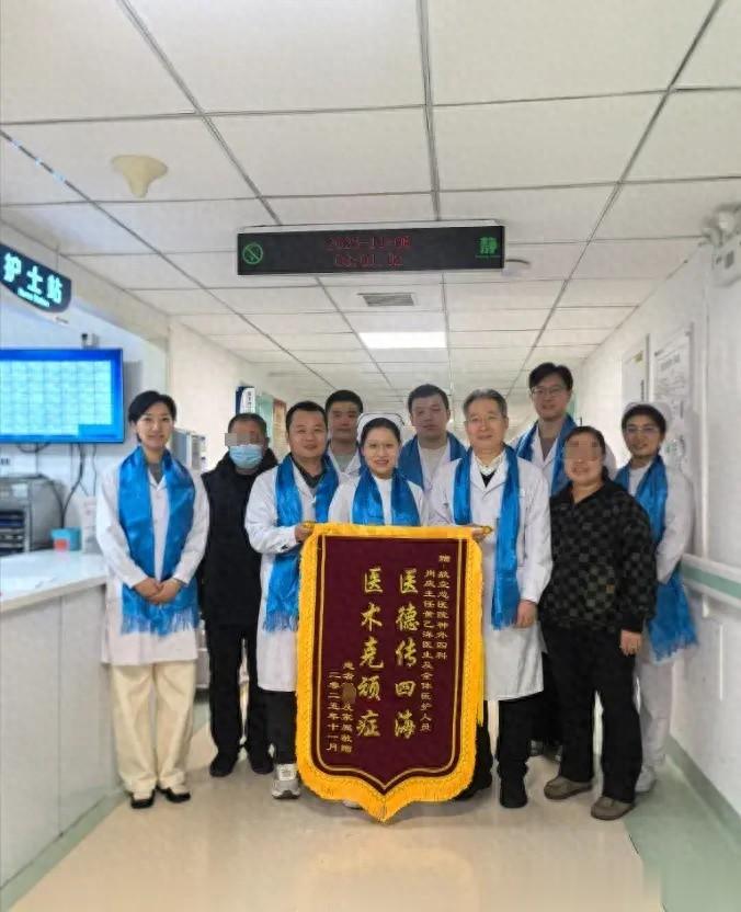 两个月的治疗后,小郭奇迹般地恢复清醒,认知功能和肢体活动逐步改善。出院当天,小郭的父母用蒙古族最崇高的礼仪——将圣洁的哈达献给每一位医护人员,表达他们深深的感激。