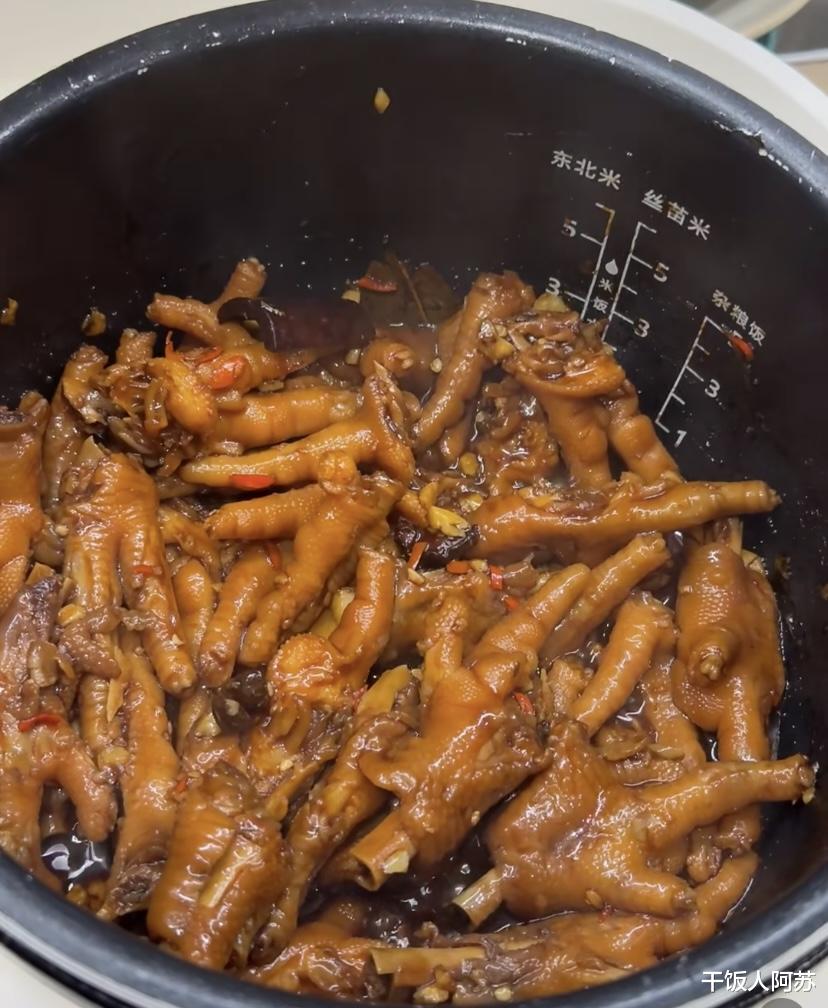高压锅压制完成后,开盖加入提前切碎的蒜蓉和小米辣。这一步是让蒜蓉和辣椒的香味充分融入鸡爪中,也让汤汁变得浓郁。然后开盖煮七到八分钟,用铲子轻轻翻动鸡爪,让每只鸡爪都能均匀沾上蒜蓉和辣椒。煮的过程中,注意观察汤汁的浓稠度,如果汤汁过多,可以开大火收汁,让汤汁更浓稠,更好地包裹在鸡爪上。最后,将鸡爪装盘,撒上葱花点缀。葱花的清香能中和蒜蓉的浓郁,让整道菜的风味更丰富。