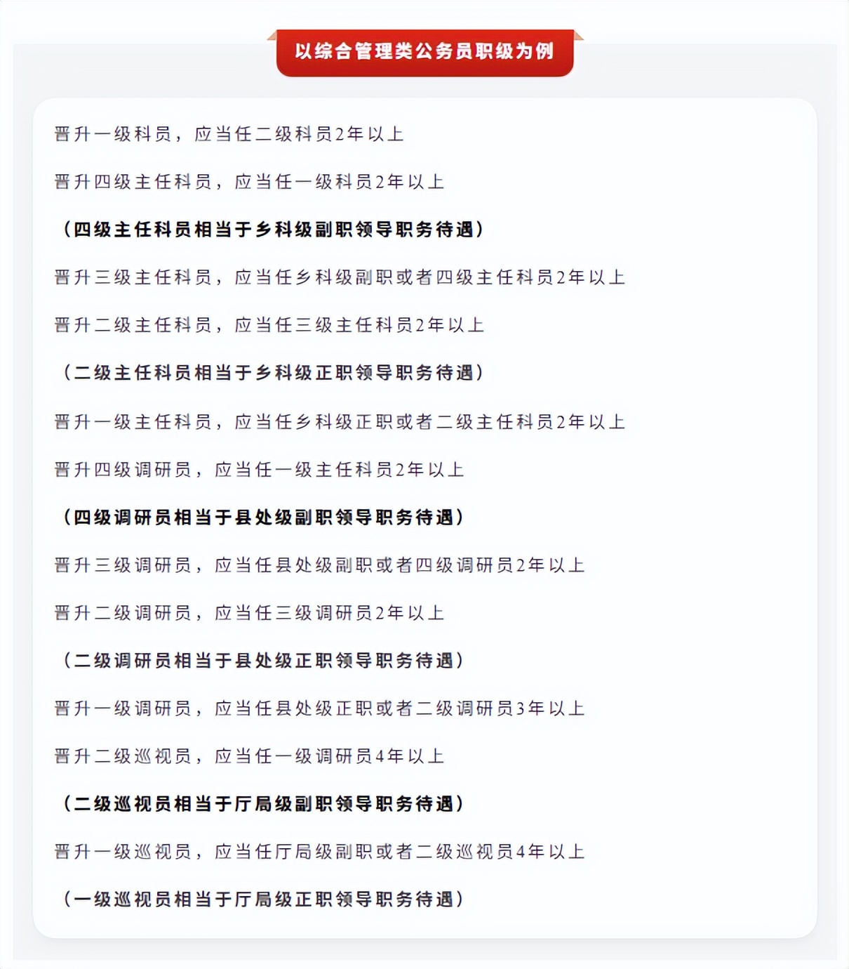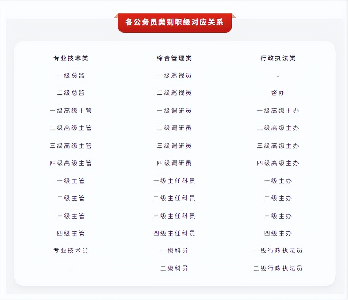 作为新入职公务员可以走的“最寻常的”职级晋升之路,职级序列按照综合管理类、专业技术类、行政执法类等公务员类别分别设置👇