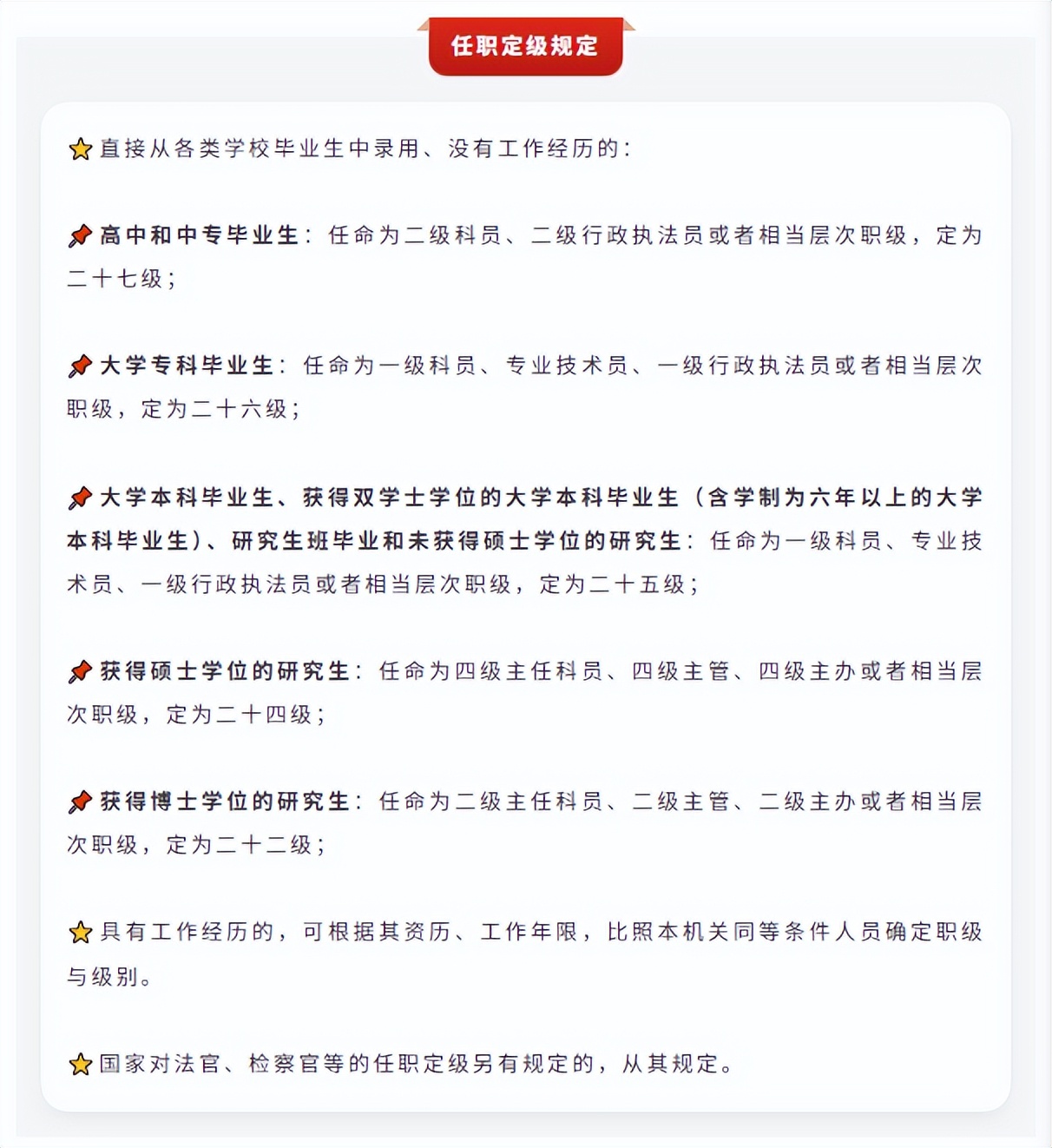Tips:按照规定,没有工作经历的硕士毕业生可以任命为四级主任科员,但是岗位表招录的是“一级科员”,由于编制限制和职数规定,有可能只任命为一级科员哦~