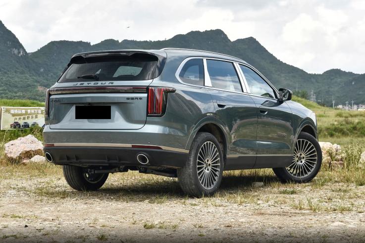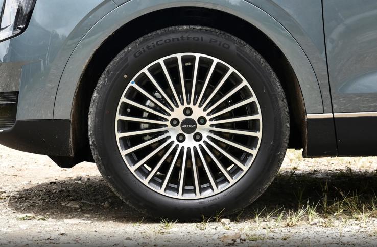 比较提气的设计还有轮圈,密幅式设计与镀铬饰条相呼应,搭配平缓舒展的腰线元素来看,视觉效果饱满大气。再看车尾部分,贯穿式LED尾灯采用横纵交接的设计,两侧竖向灯组模拟“J”元素,中间灯组组成“T”,细节上与“捷途”简写形成呼应。此外,尾灯点亮以后也有不错的辨识度,下方采用圆口排气布局,结合饱满的尾部造型来说,运动感突出。另外,在前后翼子板处还配有与车身同色的轮眉,宽度略凸出车身,20英寸轮圈适配佳通的P10轮胎,在15万这个价位里,符合年轻家庭用户对“大气稳重”的审美需求。