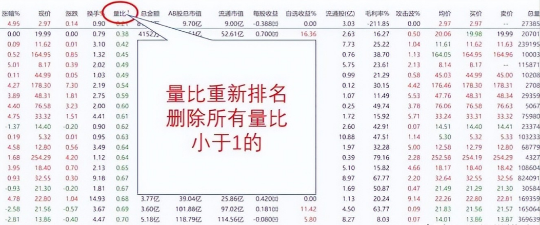 量比小于1的票直接剔除,没放量的上涨就是耍流氓,没人接力,明天你就成了接盘侠。