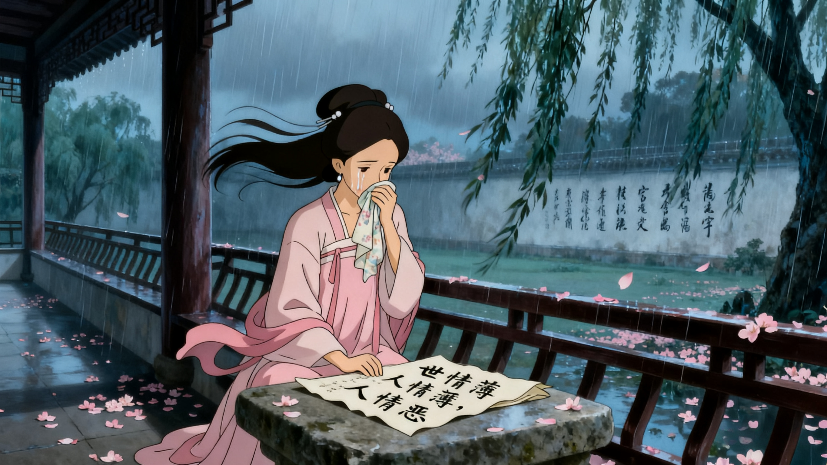 字字如针,扎进时光深处。而唐婉不久后也来到此处,读罢此词,悲不能抑,和了一首《钗头凤·世情薄》: