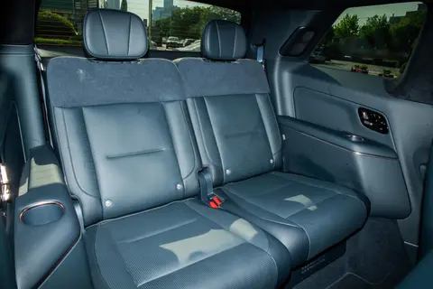 进入车内,空间体验是领克900 2025款 2.0T Ultra的一大亮点。车内采用2+2+2的六座布局,轴距长达3160mm,为前后排乘客提供了宽裕的乘坐空间。以一位身高180cm的体验者为例,坐进前排座椅,调整至舒适位置后,头部空间约有一拳的余量,腿部空间则更为充裕。移至第二排,独立座椅设计让舒适性进一步提升,腿部空间能达到两拳以上,即便是长途出行也不会感到局促。第三排座椅同样表现不错,身高180cm的乘客坐入后仍有一定的腿部活动空间,头部空间大约半拳,适合短途乘坐或儿童使用。此外,行李舱容积在300-1070L之间,日常使用完全无压力,后排座椅支持50:50比例电动放倒,空间扩展能力非常灵活,满足家庭出游的多重需求。