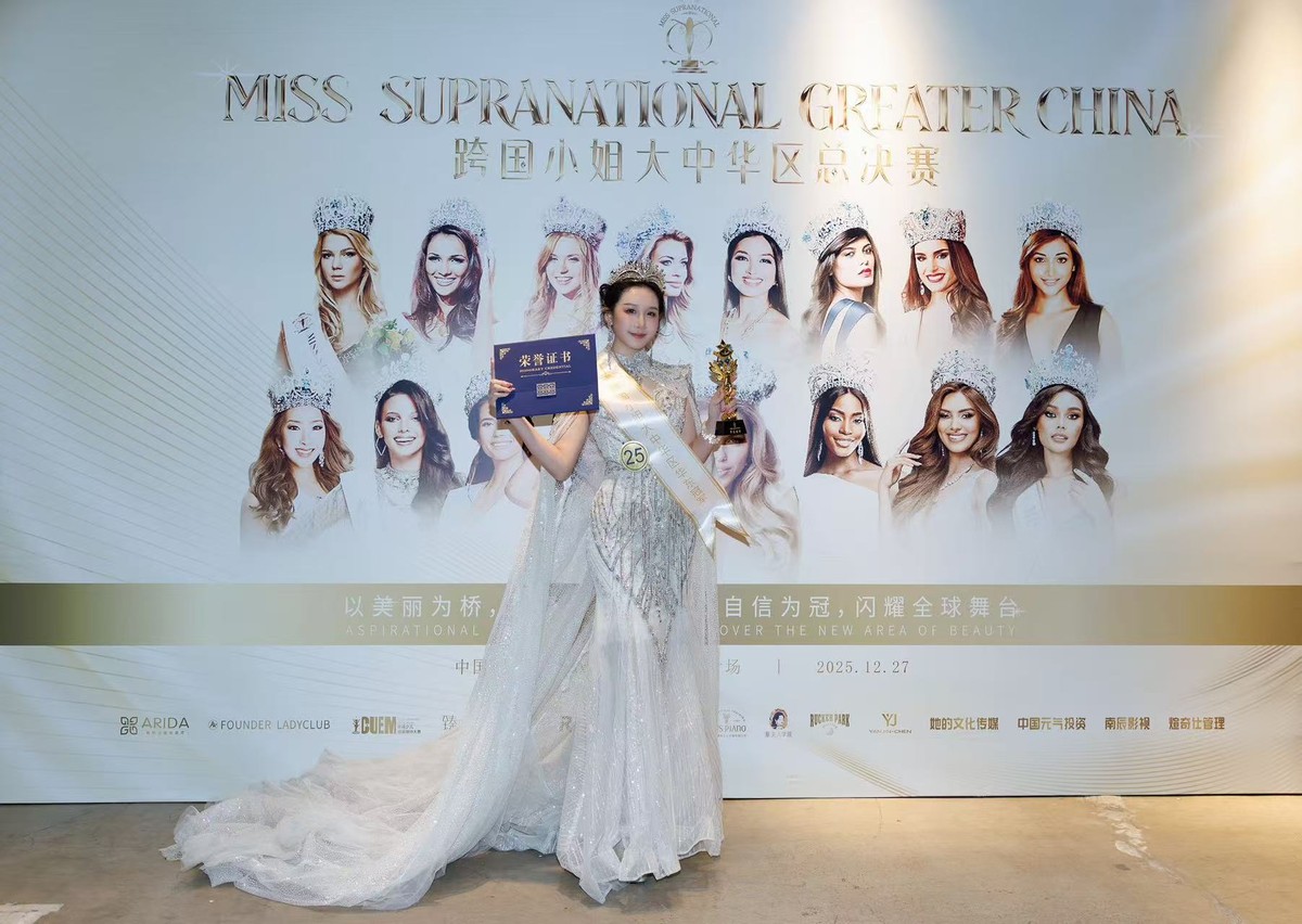 2025年12月27日,跨国小姐(Miss Supranational)大中华区总决赛华东冠军的桂冠花落钟酌妤。这场高规格赛事的出圈,不仅让她的人气稳步攀升,更让她的商业潜力被多方看见,成为品牌圈层备受看好的时尚宠儿。