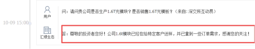 1.6T光模块:子公司武汉钧恒1.6t模块已经在给特定客户送样,并已拿到一些订单需求。
