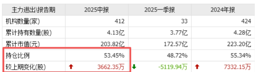 机构动态:二季度持股机构数412家,较一季度增加378家,合计持股4.13亿股,加仓3662万股。