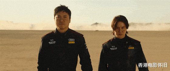 夕阳下,一台残破的赛车,两个男人的背影,《永远不回头》的歌声响起。